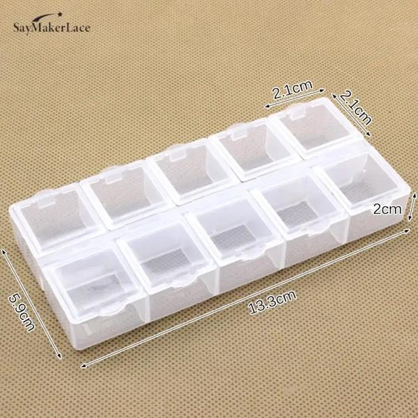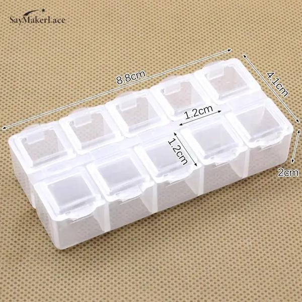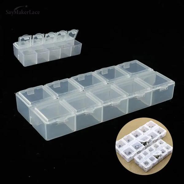 ポータブルプラスチック長方形収納ボックス,ジュエリーコンテナ,ビーズボックス,イヤリングディスプレイ,10グリッド