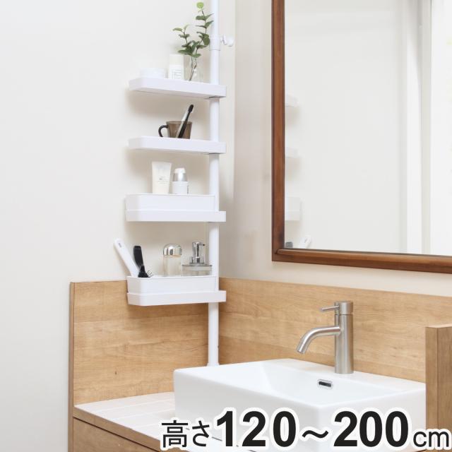 突っ張り スリムラック 洗面台上 高さ120〜200cm ( 突っ張りラック スリム ラック 収納 突っ張り棒 つっぱり ホワイト すき間収納 隙間 つっぱり棚 洗面台 キッチン トイレ 玄関 出窓 深型トレイ 突っ張り棚 )