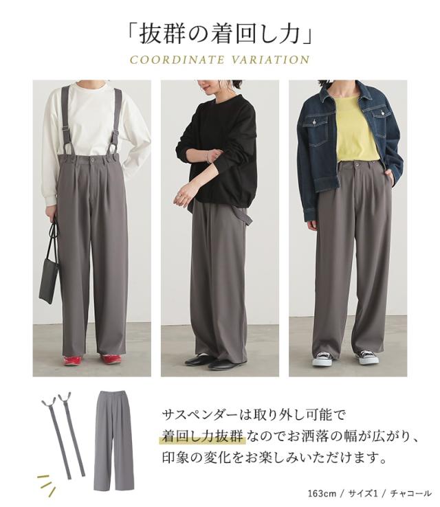 サロペット レディース パンツ サスペンダー ハイウエスト ツイル 取り外し可能 オシャレウォーカー 【TP】 ボトムス ロングパンツ ワイドパンツ ストレートパンツ n'OrLABEL ノア—ルレーベル 大人女子 大人可愛い お洒落可愛い 大人カジュアル ベーシック ニュアンス ラフ エフォートレス オフィスカジュアル 上品 きれいめ ナチュラル ロング丈 調節できる 調整可能 タック 無地 レイヤード 重ね着 ポケット 春 秋 冬 ロングシーズン カジュアル シンプル キレカジ オフィス・ビジネス ゆったり ゆる 楽ちん ストレスフリー 動きやすい Sサイズ Mサイズ Lサイズ LLサイズ 3Lサイズ XLサイズ 体型カバー 10代 20代 30代 40代 50代 60代 低身長 高身長 女子会 オフィス 通勤 通学 お買い物 お出掛け 旅行 リゾート レジャー アウトドア キャンプ おしゃれ お洒落 トレンド 流行 学校行事 ママ 母 母親 osharewalker サスペンダー取り外し可能 着回し グレー 灰色 杢グレー ライトグレー チャコールグレー チャコール ブラック 黒[ID]11dn0aj