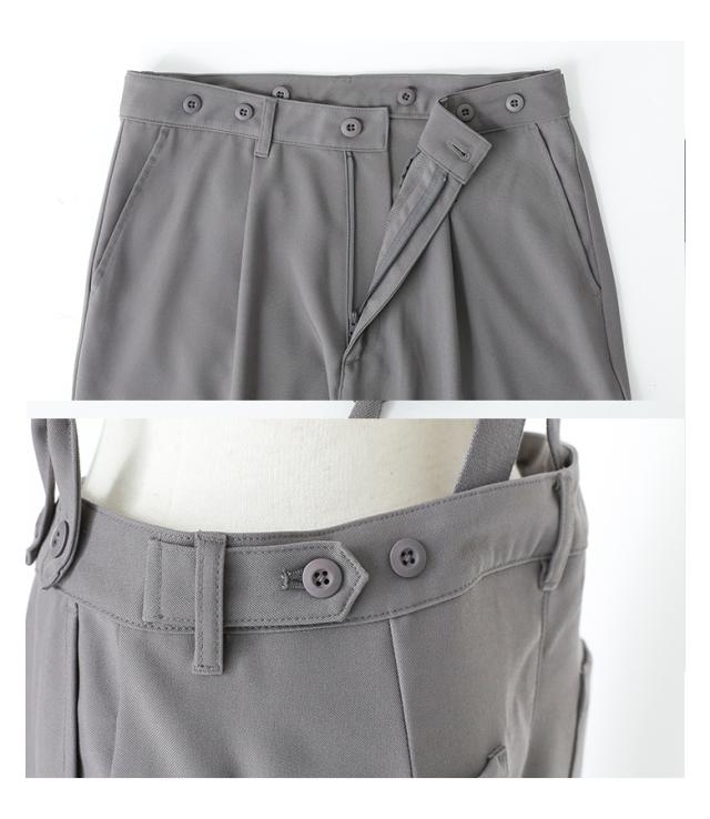 『サスペンダー付きツイルハイウエストパンツ』【メール便不可】【20】[サロペット レディース パンツ サスペンダー ハイウエスト ツイル 取り外し可能 着回し ストレッチ オシャレウォーカー]