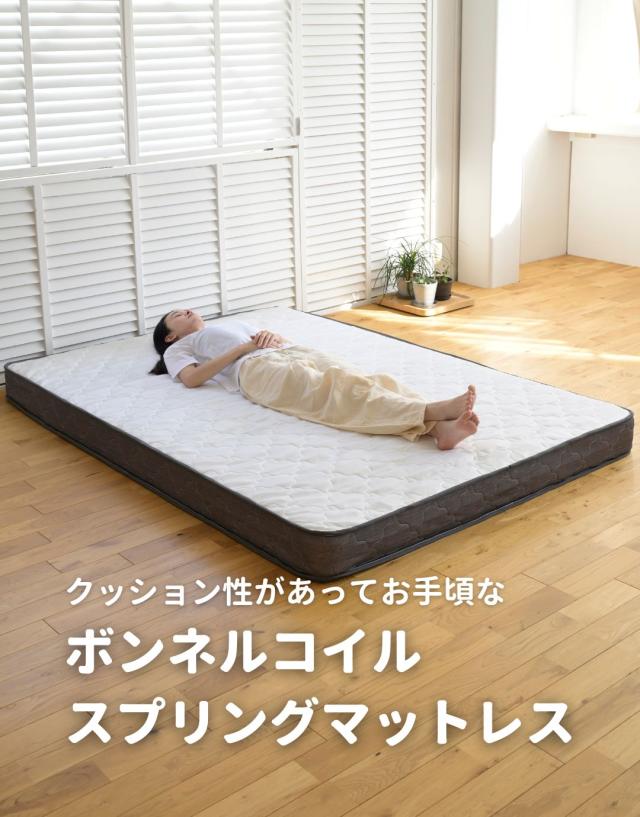 | 商品説明 | ●圧縮梱包で玄関先まで小さくお届けできるマットレス ※開封後約1日で復元しますが、環境により時間が前後します ●開梱にはハサミが必要 ●スプリングマットレスのエントリーモデル ●身体を面で支え、硬めの寝心地のボンネルコイルマットレス ●厚さ15cmのコンパクトなマットレス ●直径2.3mmの太さしっかりのボンネルコイルで全面をサポート ●圧縮ロール式で梱包は小さくお届け ●荷重の目安: S, SD, SSS=静止時90kg 、D=静止時180kg ●コイル数:480個 ※裏面は不織布のため、表裏のローテーションはできません。 |