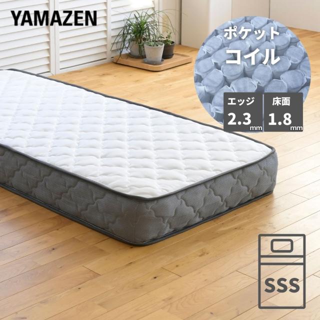 マットレス ポケットコイル 厚み20cm セミシングルショート エッジサポート線径2.3mm スプリングマットレス ベッドマット 圧縮梱包 コンパクトにお届け 山善 YAMAZEN 【送料無料】