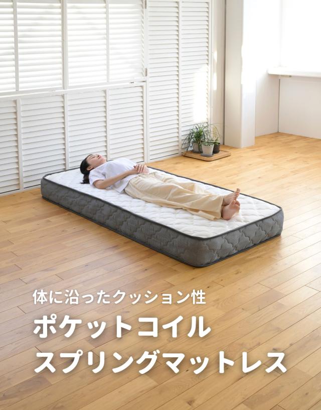 | 商品説明 | ●圧縮梱包で玄関先まで小さくお届けできるマットレス ※開封後約1日で復元しますが、環境により時間が前後します ●開梱にはハサミが必要 ●身体に沿って沈み込む、ポケットコイルマットレス ●厚さ20cmマットレス ●床面は直径1.8mmの太さポケットコイルで、身体に沿うクッショニング ●周囲は直径2.3mmの太さしっかりのコイルで沈み込みを防ぐ、エッジサポート仕様 ●側面は通気の良いメッシュ生地 ●圧縮ロール式で梱包は小さくお届け ●荷重の目安: S, SD, SSS=静止時90kg 、D=静止時180kg ●コイル数:403個 ※裏面は不織布のため、表裏のローテーションはできません。 |