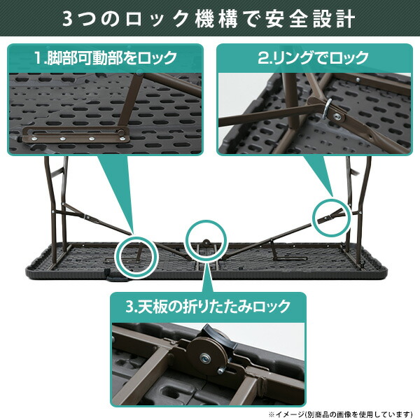 | 本体サイズ | 【テーブル】 幅240×奥行75/5×高さ74cm 重量18.8kg (収納時)幅122×奥行75.5×高さ9cm 【ベンチ】 幅244×奥行30×高さ43cm 重量10kg (収納時) 幅124×奥行30×高さ8.5cm |