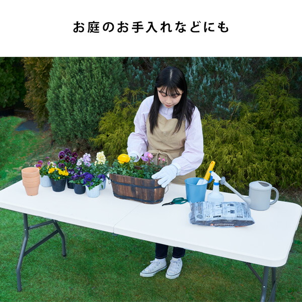 | 商品説明 | ●シンプルなホワイトのガーデンテーブル&ベンチセット ●折り畳んでコンパクトに収納可能 ●持ち手が付いているので持ち運び簡単 ●キャンプやBBQ、お祭りなどのイベントにも最適 ●使用目安:6〜8人 ●大型のテーブルなので、作業台やワークテーブルとしてもおすすめ ●折り畳めばコンパクトになるので、人がたくさん集まる会場や学習机としてもおすすめ |