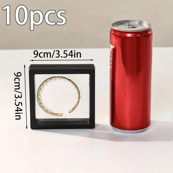 PEフィルムジュエリー収納ボックス,3Dパッケージケース,フリースタンド,フローティングフレーム,メンブレン,リング,イヤリング,ネックレスディスプレイ,黒,白,10個