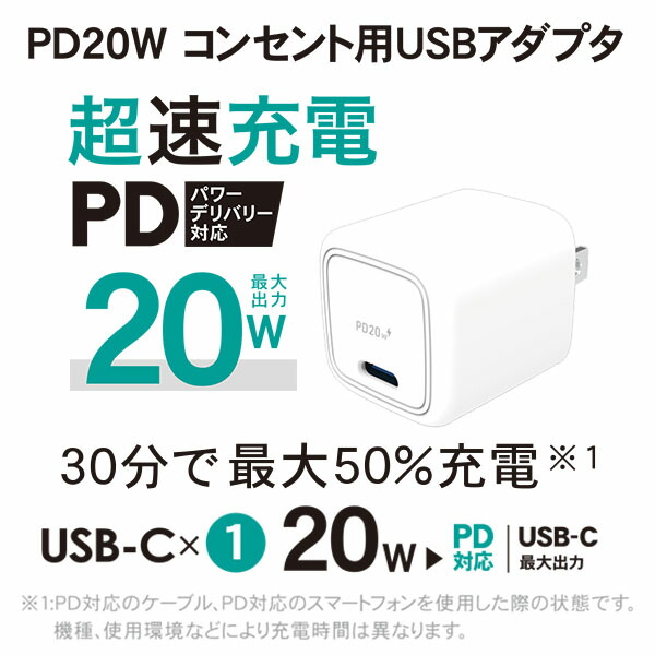 | 商品説明 | ●コンパクトサイズのコンセント用USBアダプタ ●USB-Cポート×1 ●超速充電 PD対応アダプタ ●携帯に便利なコンパクトサイズ ※充電用ケーブルは付属していません。 |