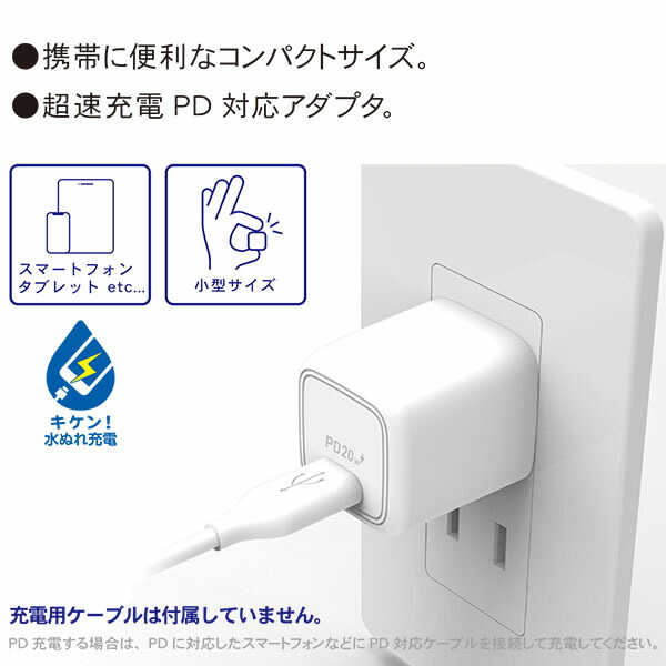 PD20W コンセント用USBアダプタ ACPS20-WT/BK/PU/PK/MG コンセント用 充電 アダプター コンパクト PD対応 コンセントタップ 20W トップランド TOPLAND 【送料無料】