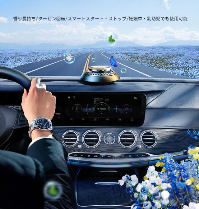【正規品】CEENIU 車用芳香剤 高級カー用品 2024新型 アルミ合金製 ソーラー回転 エッセンシャルオイル2本付き F21 カーフレグランス