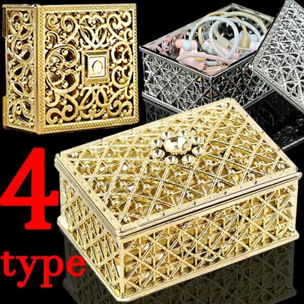 ヨーロッパの金メッキ宝物ボックス,ジュエリーパッケージ,レトロな収納ボックス,イヤリング,ネックレス,ビーズ,シルバーメッキ