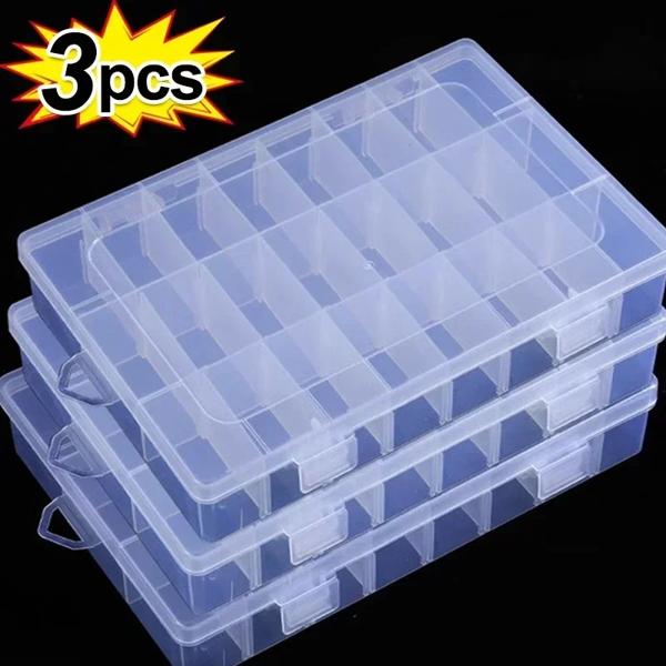 ジュエリー用の透明なプラスチック製収納ボックス、ビーズやイヤリング用の調整可能なコンパートメントコンテナ