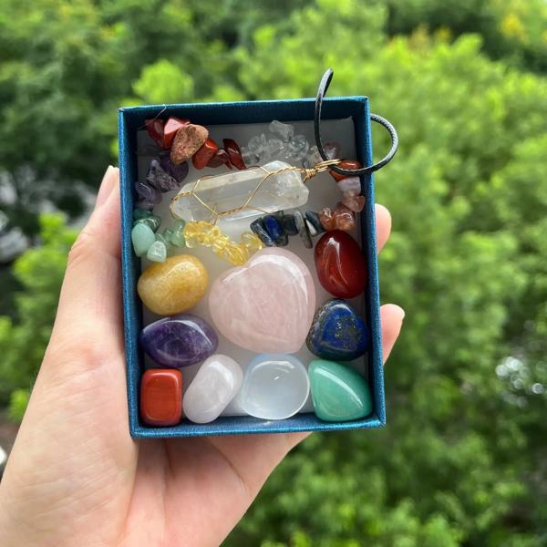 天然石ヒーリングクリスタルジュエリー,日曜大工のギフトボックスセット,7チャクラ,バランス,11個,14個