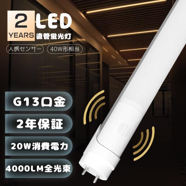 LEDセンサーライト 室内 LED蛍光管40W 直管型LEDランプ LED蛍光灯 40W 片側給電 LED直管蛍光灯 40W型 人感センサーライト 消費電力20W 高輝度4000lm G13口金 LEDチューブライト LEDベースライト LEDライト LED照明器具 1198MM 節電対策 寝室灯 防犯照明 廊下 玄関 階段 洗面所