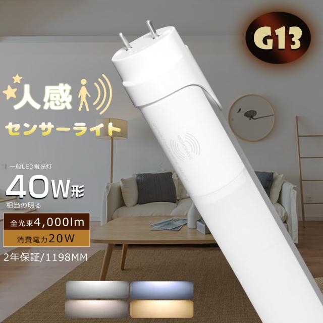 LED蛍光灯 40W形 人感センサー付き 直管 120CM LED蛍光灯 直管 120CM 蛍光灯 40形 直管 LED 直管LEDランプ 40形相当 直管型LED蛍光灯 センサーライト 室内 人感 消費電力20W 高輝度4000lm G13口金 直管蛍光灯器具 片側給電 1198MM 40W型 40型 LED照明 廊下 階段 洗面所