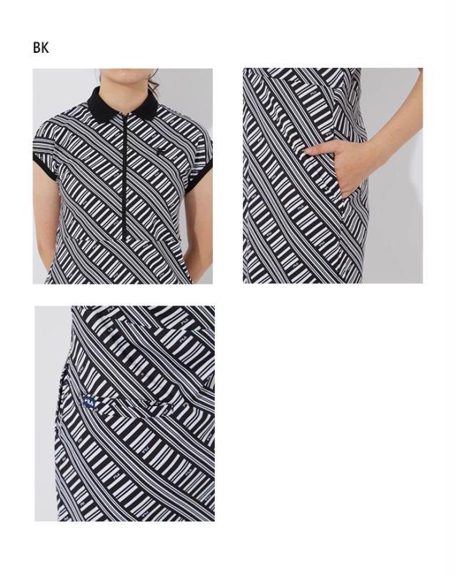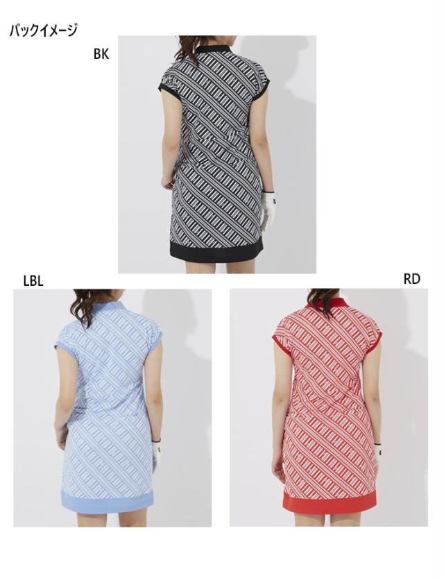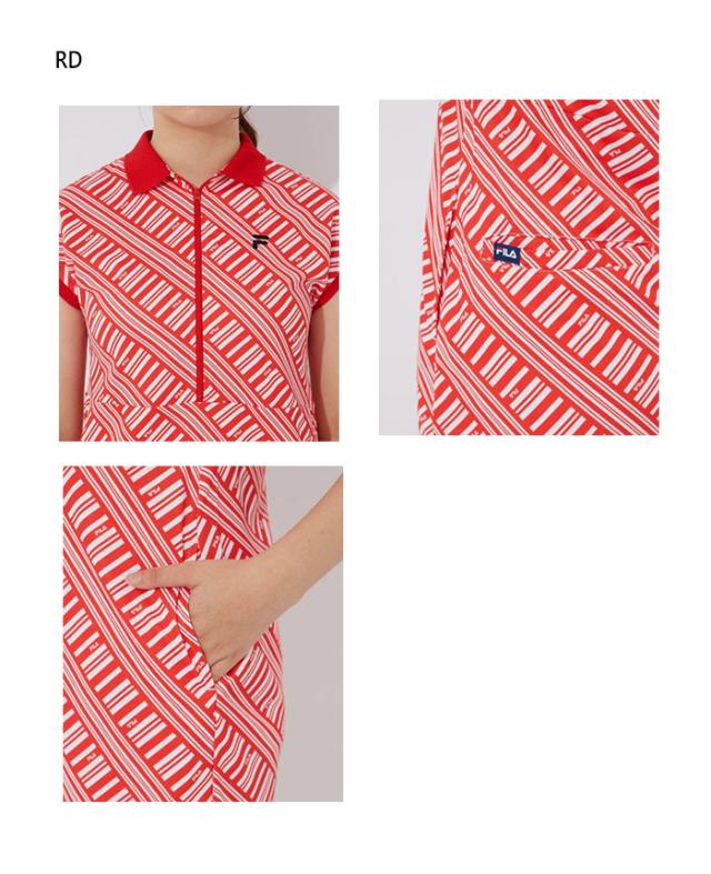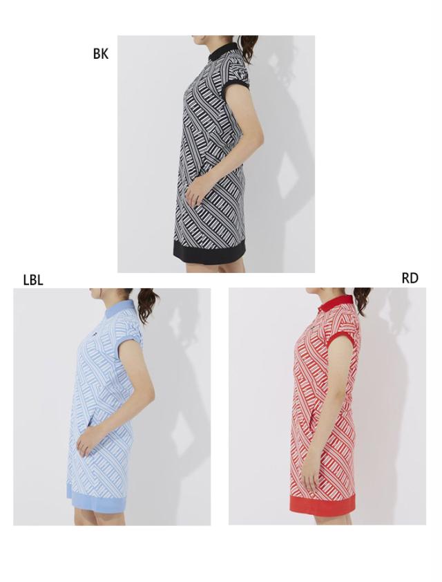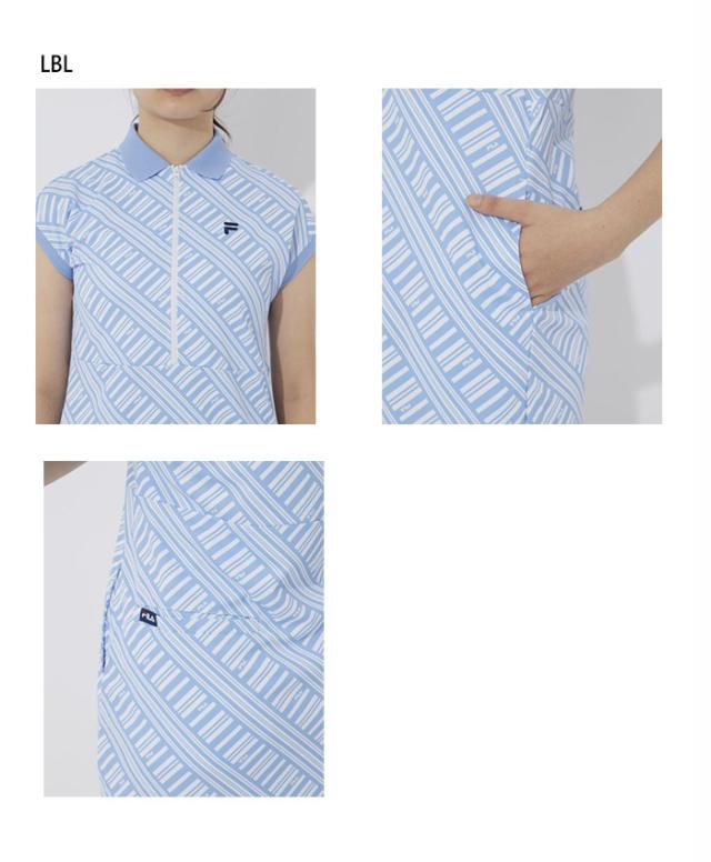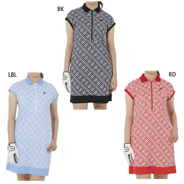 フィラ ゴルフ レディース ストライプ柄ワンピース ゴルフウェア トップス 接触冷感 吸汗速乾 半袖 総柄 ブラック 黒 ブルー レッド 青 赤 送料無料 FILA GOLF 754460