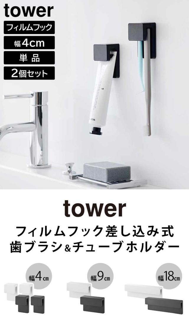 タワー 山崎実業 tower フィルムフック差し込み式歯ブラシ&チューブホルダー W4 2個×2セット YAMAZAKI フィルムフック 歯ブラシ収納 歯磨きスタンド 歯ブラシホルダー おしゃれ 歯ブラシ立て 浮かせる 壁掛け収納 洗面所 洗面台 サニタリールーム 省スペース
