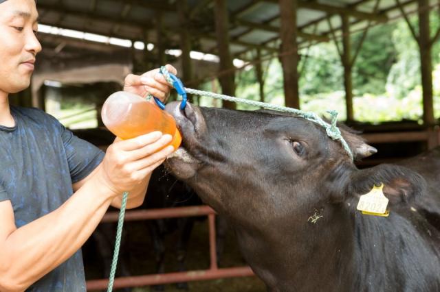 水は山から流れる阿武隈川水系の天然水。水量豊かな天然水が牛の成長を支えます。