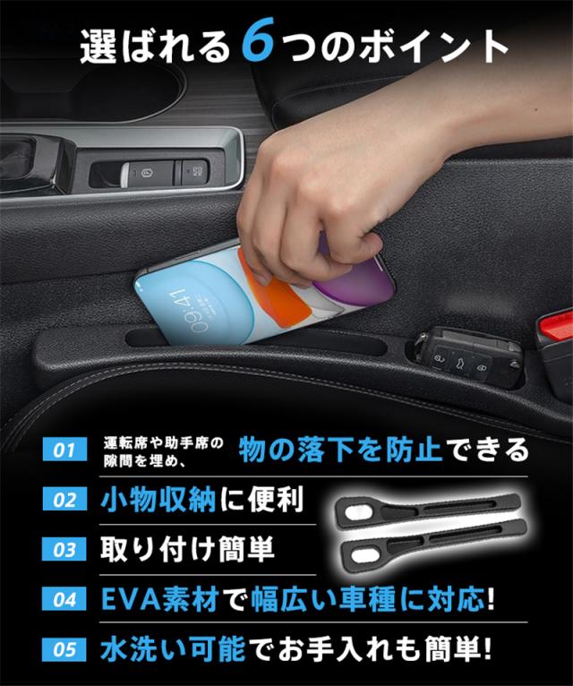 車 隙間収納 車内収納 車中泊 収納便利 車シート 隙間 座席 隙間用 差し込み 車のシートの隙間 便利グッズ 隙間ギャップフィラー 落下防止 運転の邪魔にならない 携帯電話 カード 鍵 リモコンの収納 運転席 助手席 厚型 車用