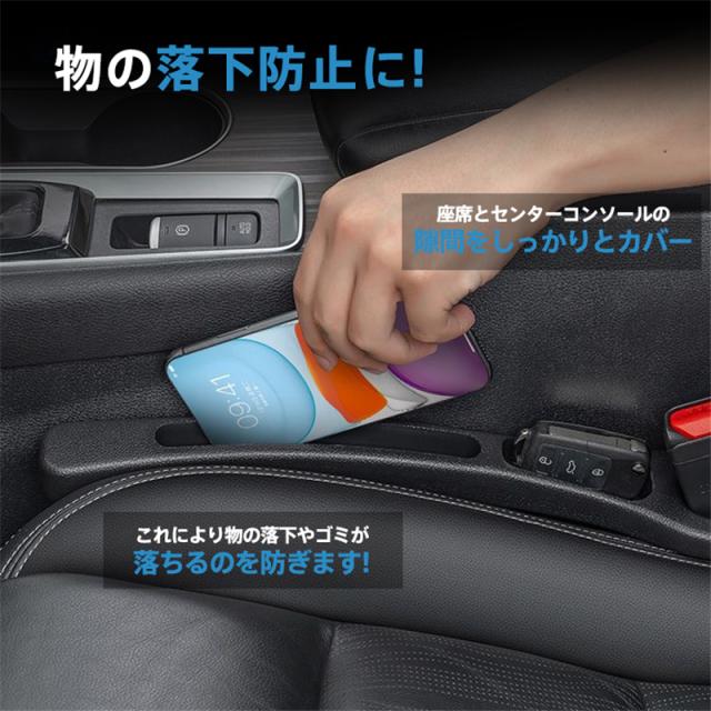 携帯電話、財布などの小物が車のシートとセンターコンソールの隙間に落ちるのを効果的に防ぎ、車内の散らかさを避けます。