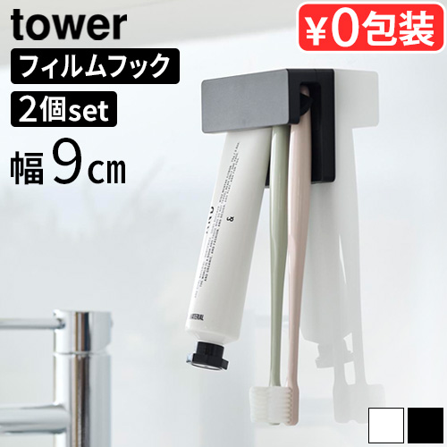 タワー 山崎実業 tower フィルムフック差し込み式歯ブラシ&チューブホルダー W9 2点セット YAMAZAKI フィルムフック 歯ブラシ収納 歯磨きスタンド 歯ブラシホルダー おしゃれ 歯ブラシ立て 浮かせる 壁掛け収納 洗面所 洗面台 サニタリールーム 省スペース
