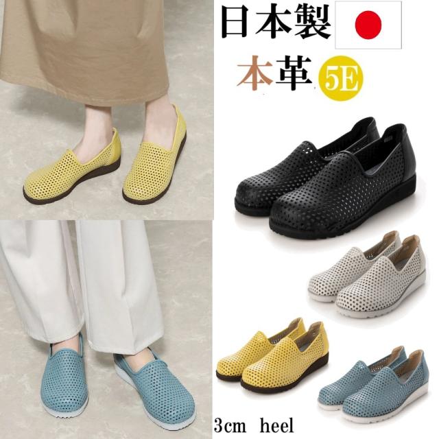 日本製 本革 牛革 レザーシューズ パンチングシューズ コンフォート 幅広 5e 外反母趾 軽量 軽い ゆったり スリッポン 履きやすい 歩きやすい 痛くない カジュアル レディース靴 おしゃれ