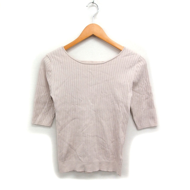 【中古】アプワイザーリッシェ Apuweiser-riche リブ ニット バックレースアップ 半袖 丸首 無地 2 ベージュ /FT15