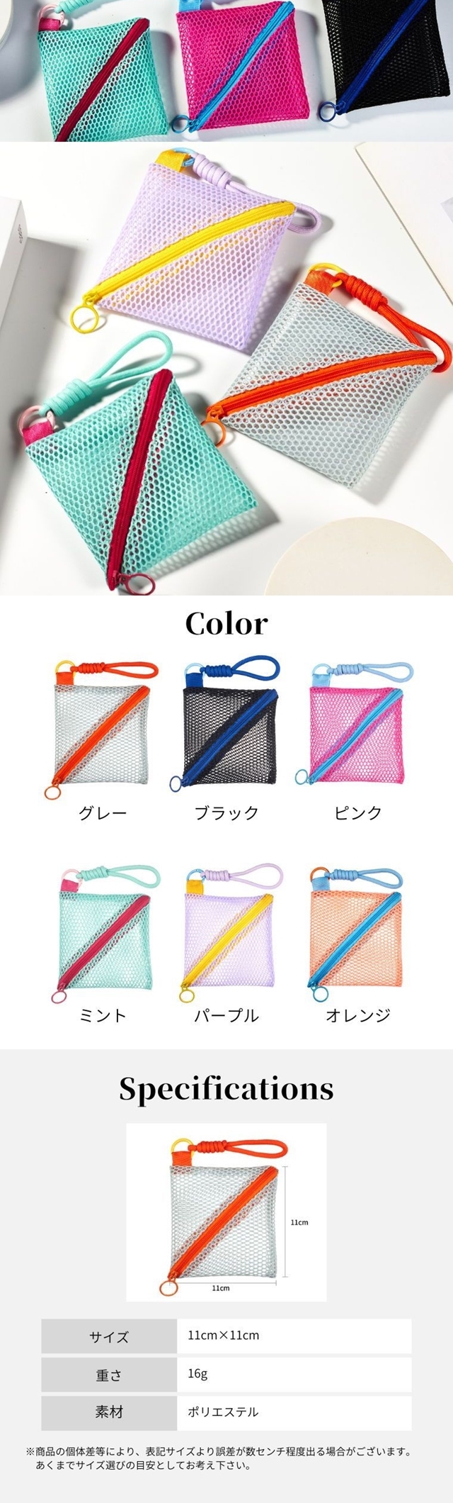 ポーチ メッシュポーチ 小物入れ ミニポーチ コンパクト かわいい おしゃれ 韓国風 軽量 収納ケース ファスナーポーチ 小銭入れ コスメポーチ 小物収納 旅行ポーチ カラフル 通気性 レディース メンズ プレゼント ギフト 春 新作 母の日
