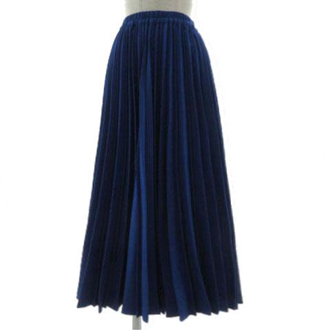 【中古】ニコアンド プリーツ サーキュラー スカート S215SM05SM フレア ミモレ丈 ウエストゴム ヘリンボーン 青 M