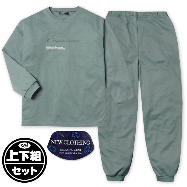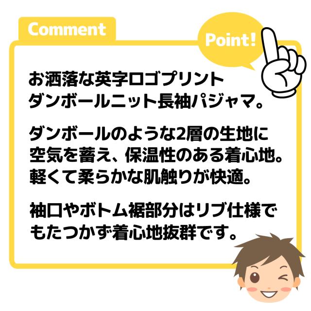 【送料無料】紳士 メンズ ダンボールニット 長袖 パジャマ 上下組 丸首 英字ロゴプリント バックポケット 紳士服 M L LL my-0092a-kk
