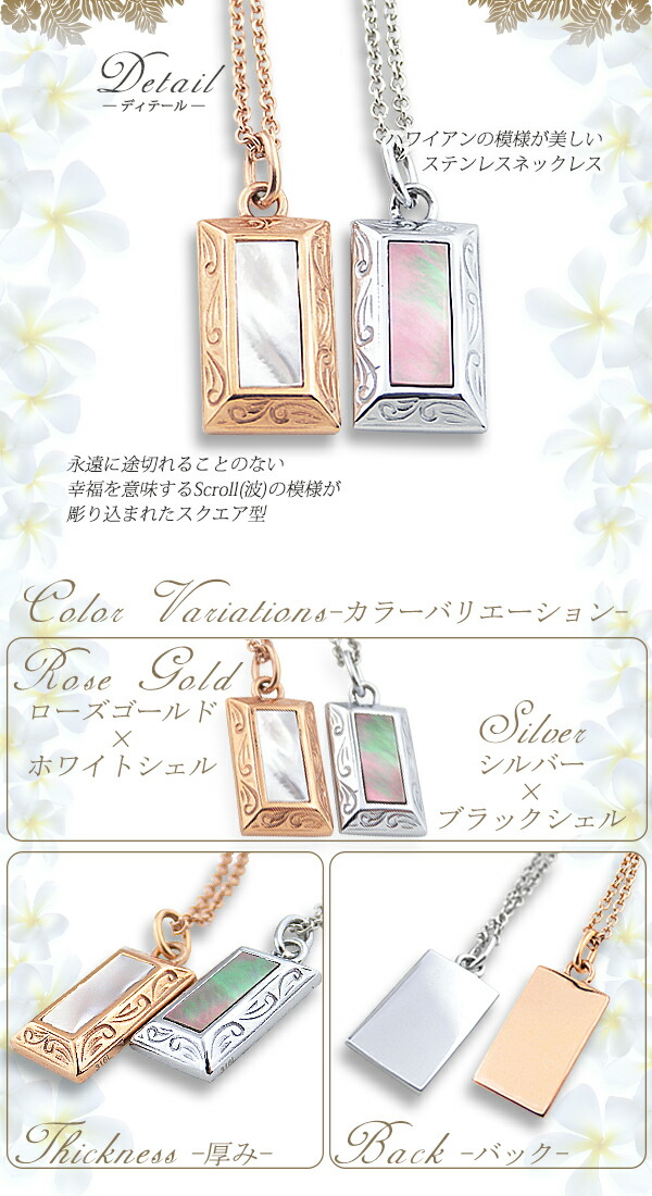 | 商品名 | ハワイアンジュエリー ペアネックレス ステンレス 刻印無料 ブラックシェル ホワイトシェル サージカルステンレス ローズゴールド ピンク シルバー あずきチェーン付き メンズ レディース ハワイアン ペア ネックレス ペンダント 金属アレルギー対応 |