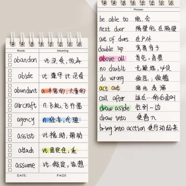 暗記に便利な縦型ノートタイプの単語帳なら、