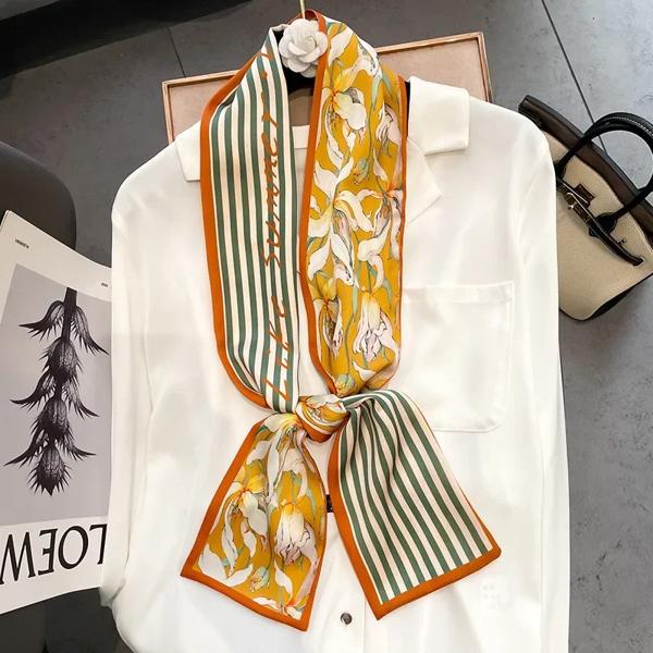 女性用シルクリボンスカーフ,高級デザイン,ヘアバンド,スキニースカーフ,ネクタイ,バッグスカーフ,女性用ネッカチーフ,17x150cm