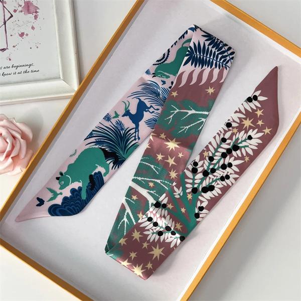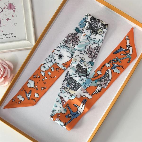 女性のための豪華なシルクスカーフ,ヘアアクセサリー,ファッションバッグハンドル,女性の馬のプリントバンド,新しい女性の秋のコレクション60sku 2022