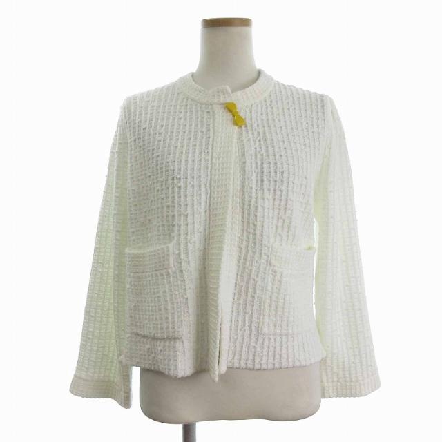 【中古】ドゥクラッセ DoCLASSE ニットジャケット カーディガン 長袖 リボン 白 ホワイト L レディース