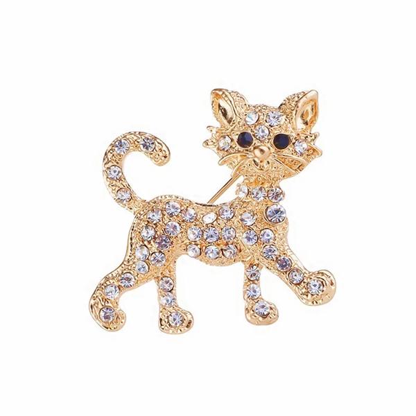 女性のためのクリエイティブなエナメルキャットブローチピン、ランドバッグブローチ、スカーフバックル付きラインストーンジュエリー