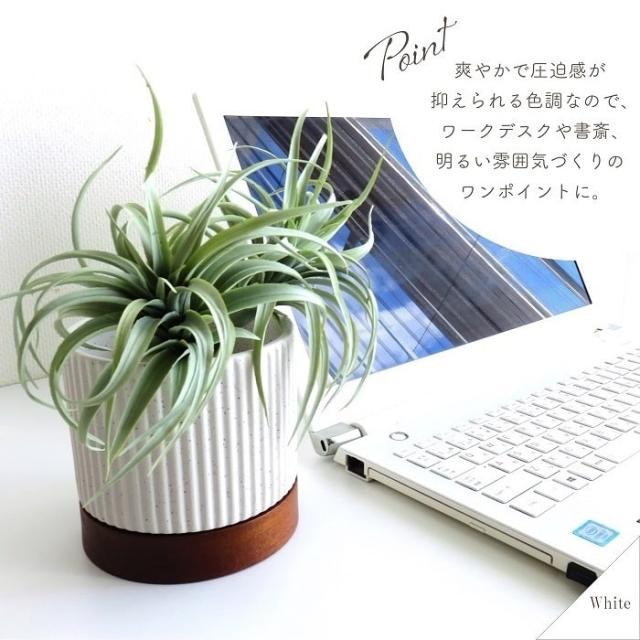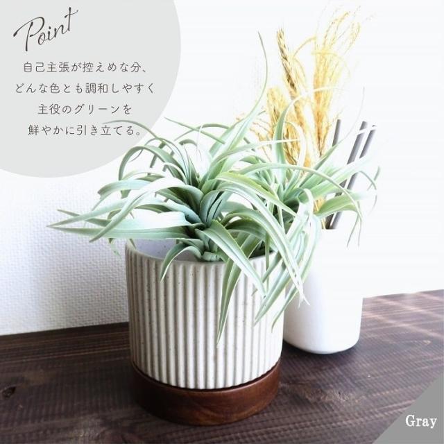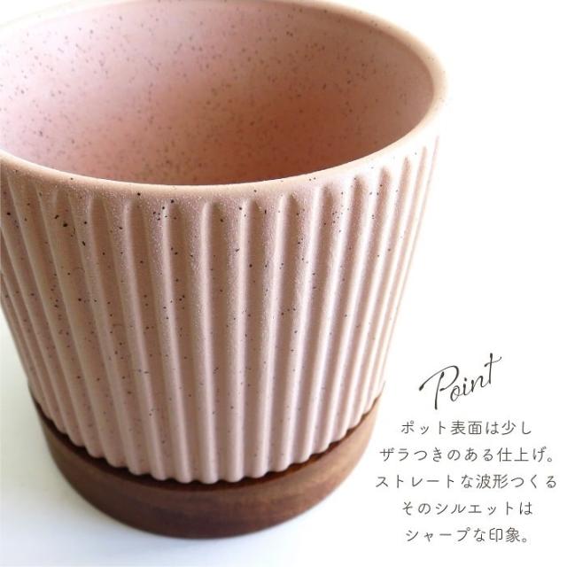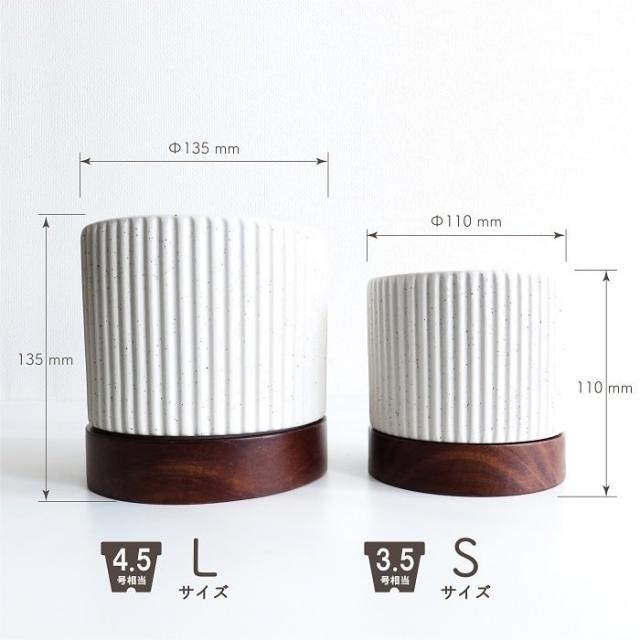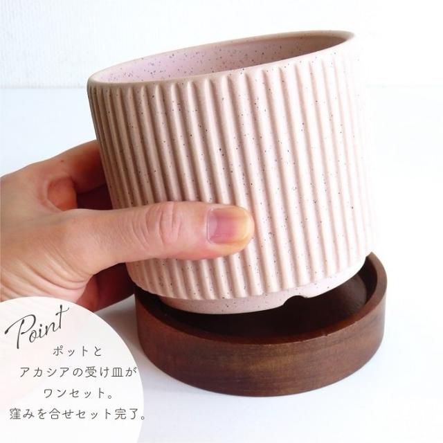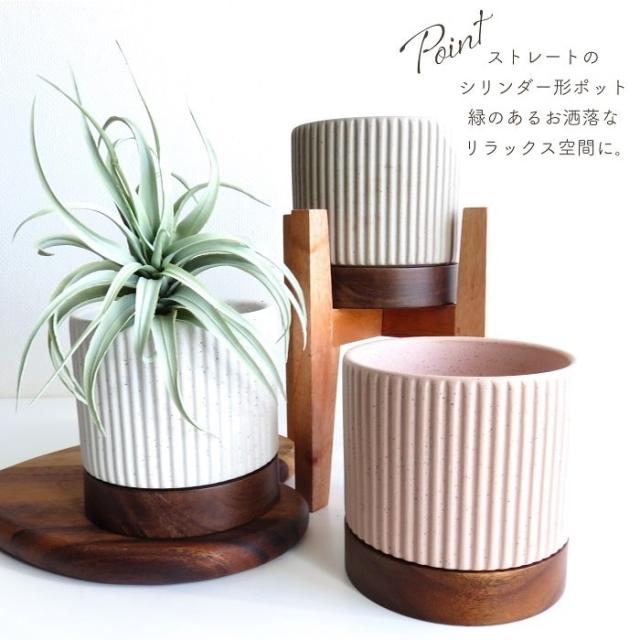 鉢 プランター タイディポット S セラミック 木製受け皿 アカシア クリアラッカー仕上げ 底穴あり 3.5号相当 シリンダー型 ストレート インテリア