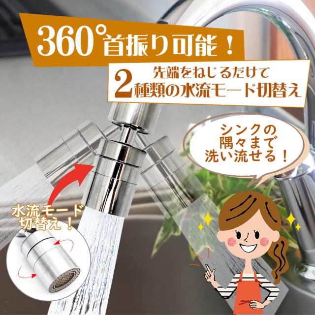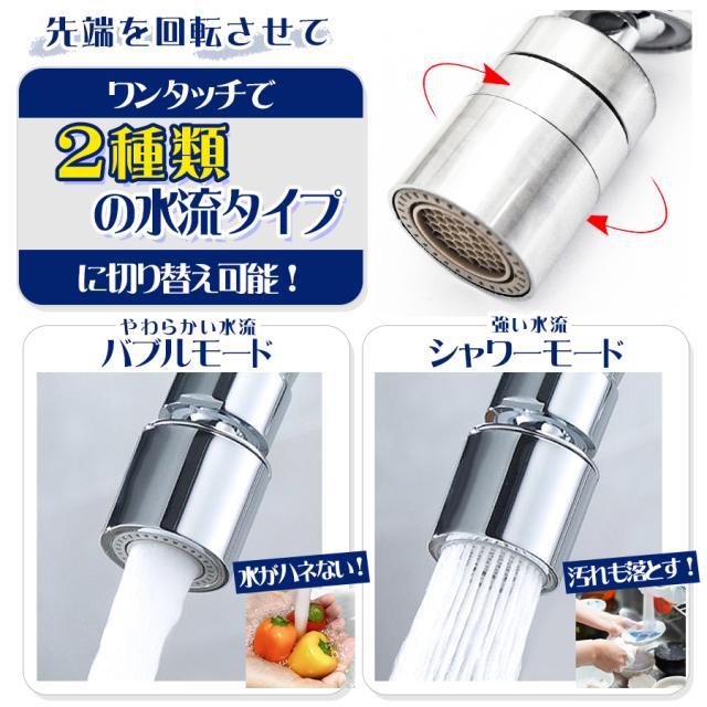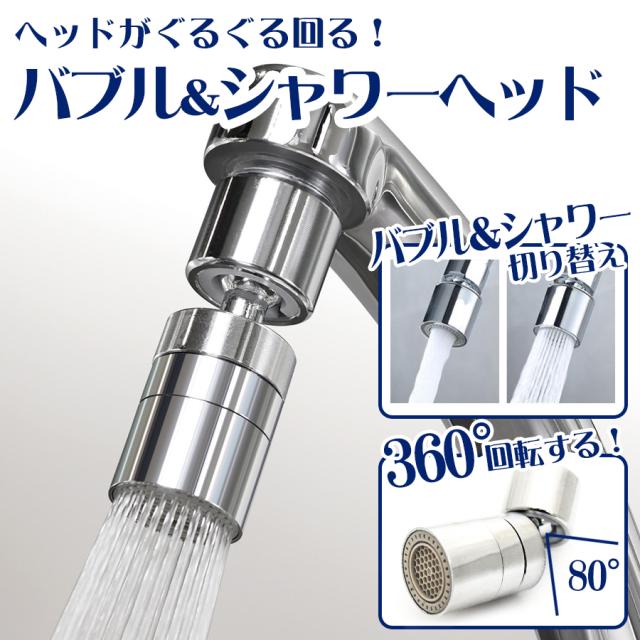 ぐるぐる回る蛇口 バブル&シャワーヘッド 蛇口 シャワー 首振り キッチン シャワーヘッド 交換 洗面台 節水 水道 蛇口交換 切り替え 水栓 2段階切替 360度回転 80度