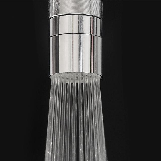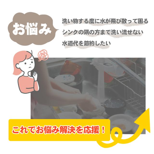 また、ノズルを回すだけで、水ハネを抑える「バブル水流モード」、食器汚れも落とす「シャワー水流モード」の2種類の水流モードがワンタッチで切り替え可能!