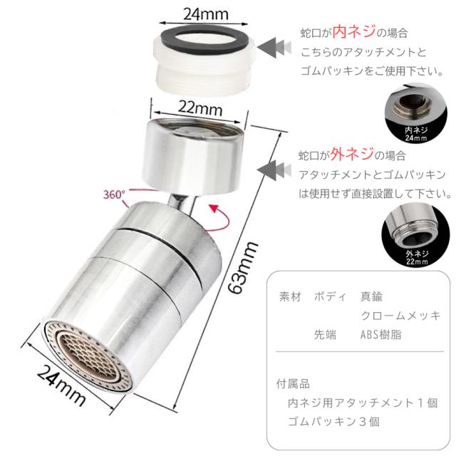 ・蛇口が「内ネジタイプ」の場合:24mm幅の蛇口サイズに対応しています。