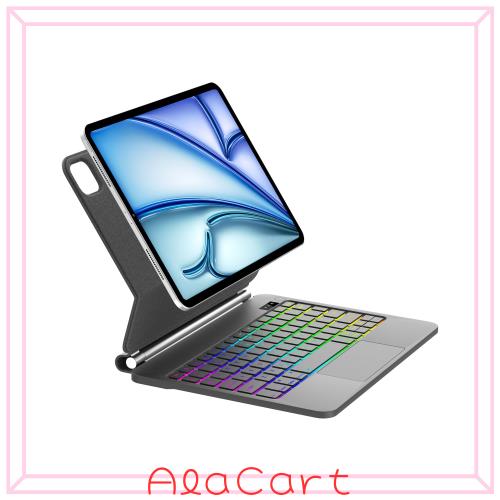 【強力磁気設計&130°角度調整】このiPad Air 13インチ キーボード ケースには強力なマグネット内蔵されており、iPadをしっかり吸着でき、落ちにくいです。135°調整可能なフローティング磁気スタンドで、ウェブの閲覧、レポートの作成や映画を楽しむ時に理想的な視野角を楽しめます。