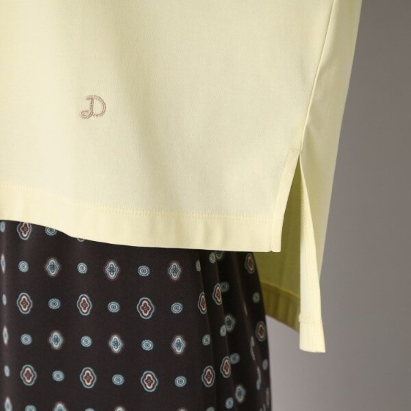 前後差と脇スリット入りのヘムラインは、前丈を短くすることで、前裾をタックインしなくてもコンパクトな上半身&脚を長く見せるスタイリングを作る事ができます。