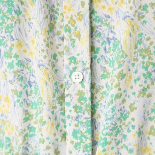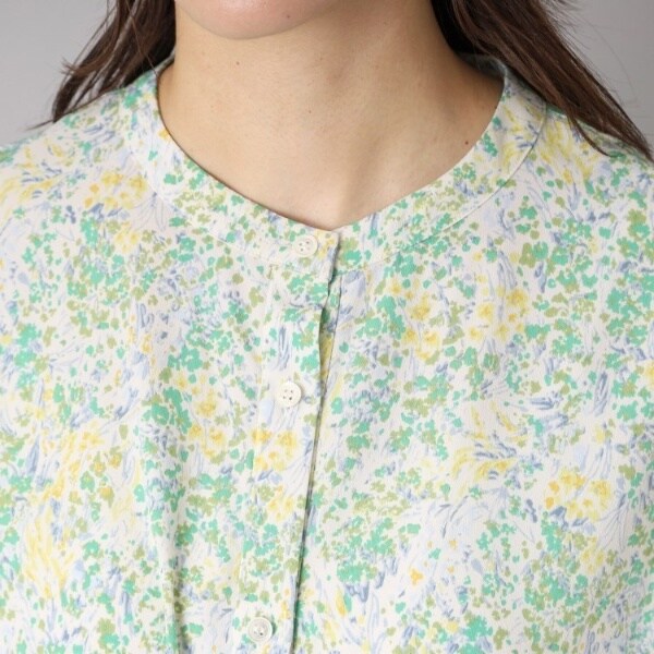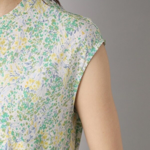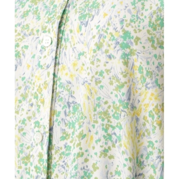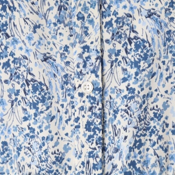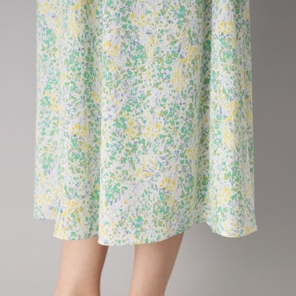 プリントは、水彩タッチで幾何柄の様にも見るフラワー柄。
