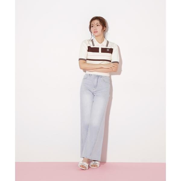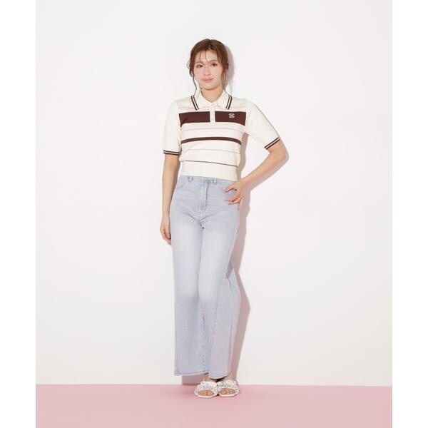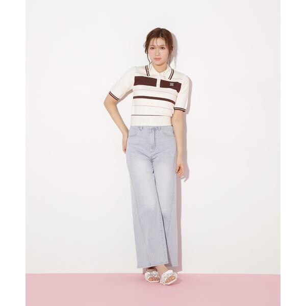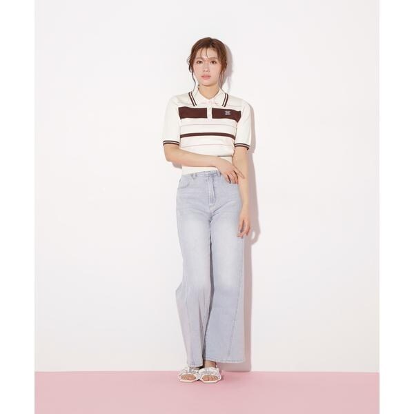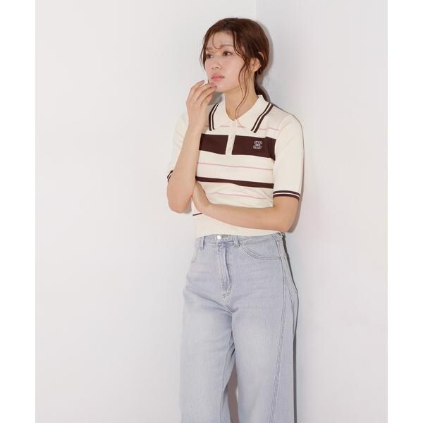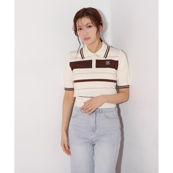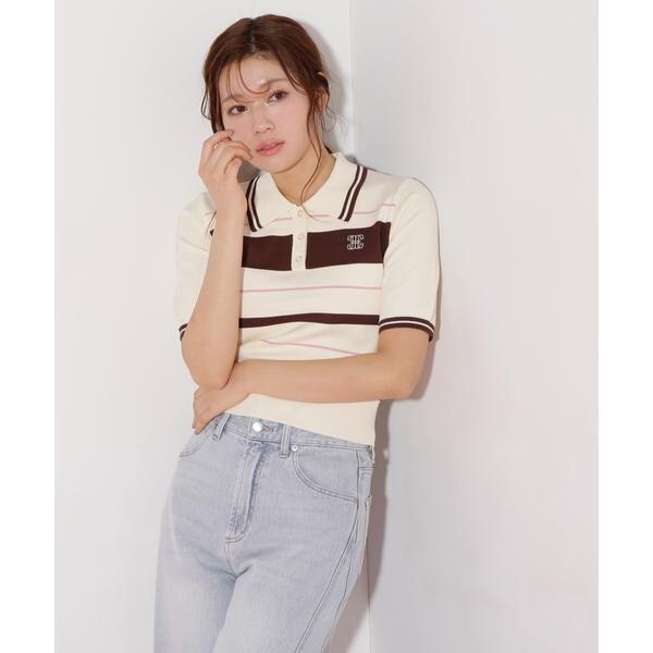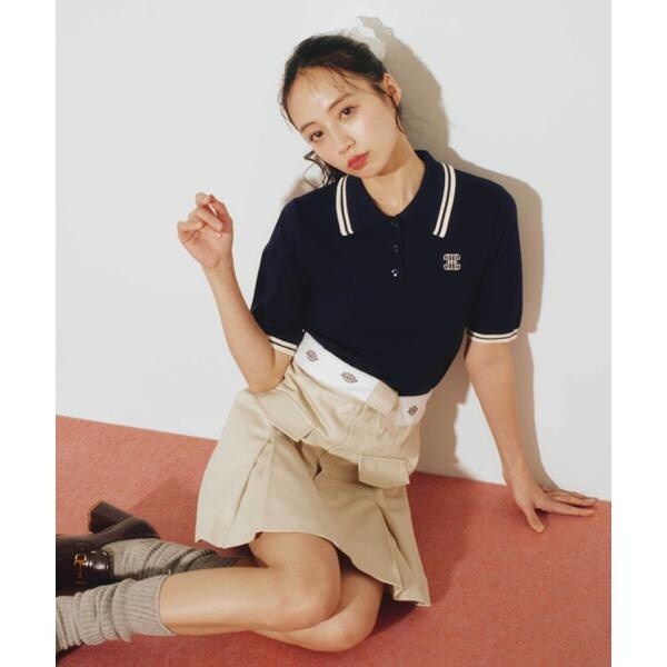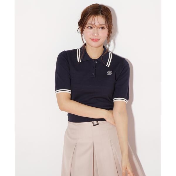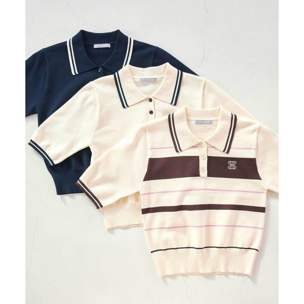 ジル バイ ジル スチュアート(JILL by JILL STUART)/バイカラーポロシャツ五分袖ニット