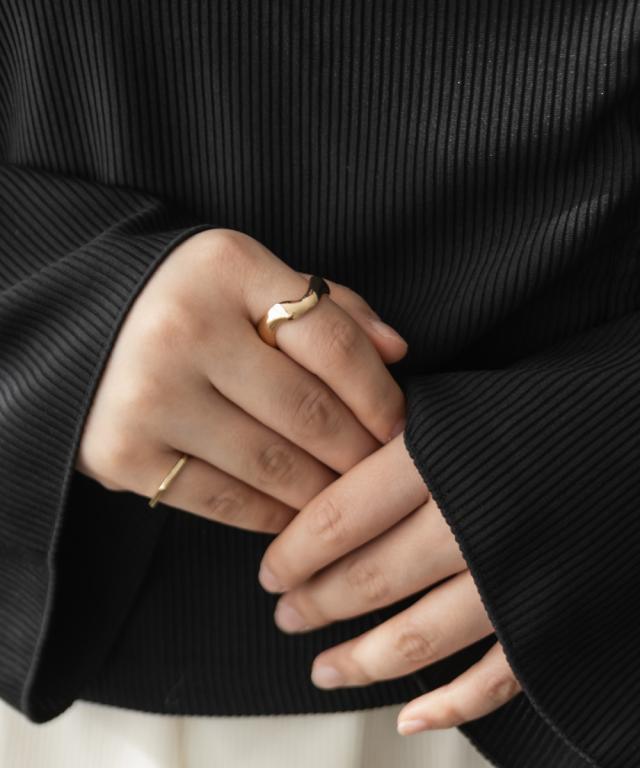 | 人差し指にはめてゆとりのあるサイズ感でした。少し厚みがありますが締めつける窮屈感はありませんでした!ニュアンスっぽいウェーブデザインが大人カジュアルで可愛いです!洗練された雰囲気になれて普段使いはもちろん特別なシーンにも付けていきたいアイテムです!存在感のあるリングなので手元を華奢にしてくれます。お洒落な雰囲気のリングで大きいサイズがなかなかないので嬉しいです♪ |