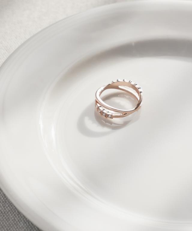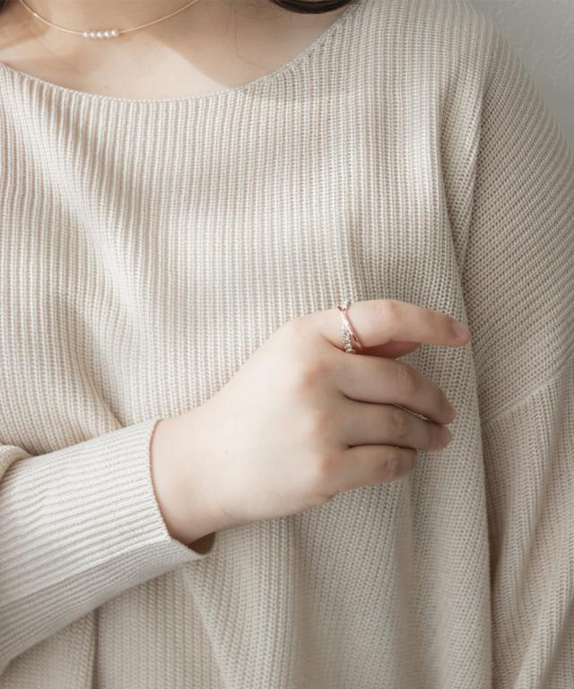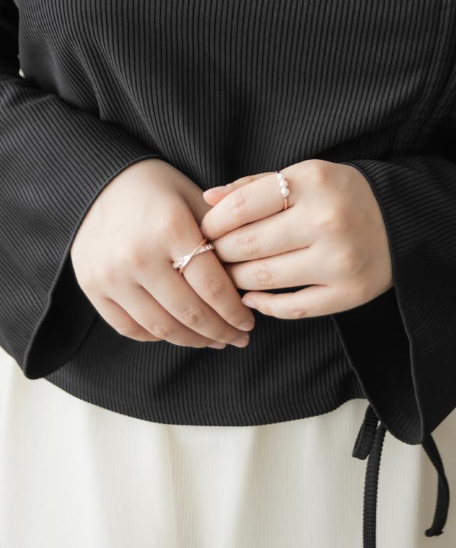 | 人差し指にはめて少しゆとりのあるサイズ感でした。号数が大きめでお洒落なデザインは少ないので嬉しいです♪クロスしたデザインとキラキラのストーンが上品で大人っぽく、手元を華やかにしてくれます!肌なじみがよく、可愛いピンクゴールドでフェミニンガーリーな雰囲気になれます!普段のお出かけにはもちろん、特別なシーンにもお使いいただけます◎ |