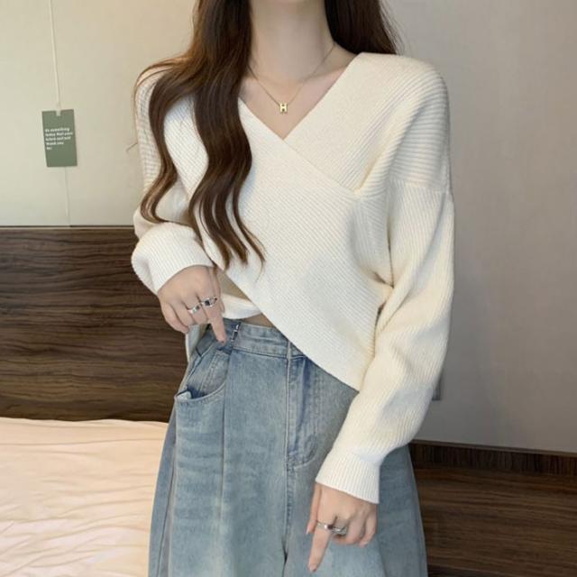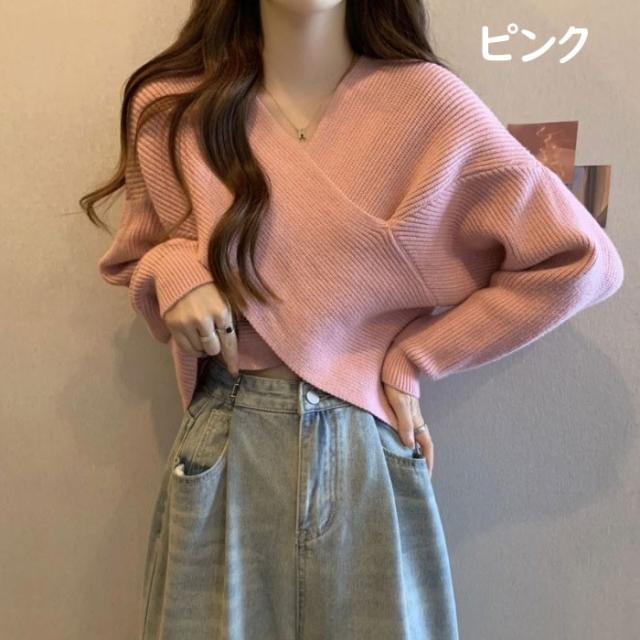 ニットセーター レディース きれいめ ニット セーター 秋 冬 ゆったり ふわゆる フロントクロス カシュクール リブニット Vネック トップス カットソー 春 長袖 カジュアル 個性的 おしゃれ 可愛い 暖かい レッド 赤 ホワイト 白 ピンク グレー ブラック 黒 eh001m6cyh5 eh001m6