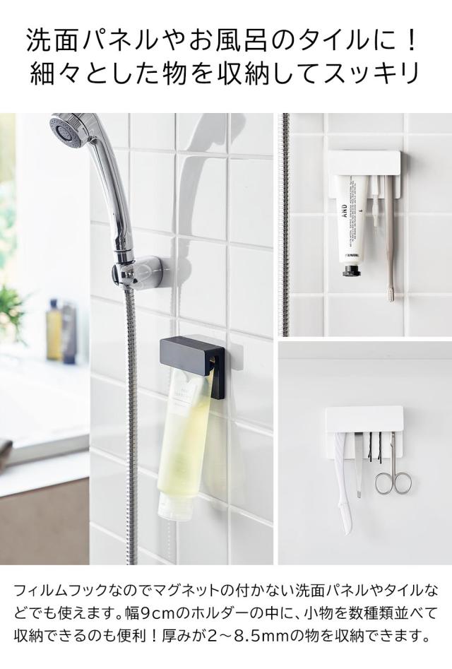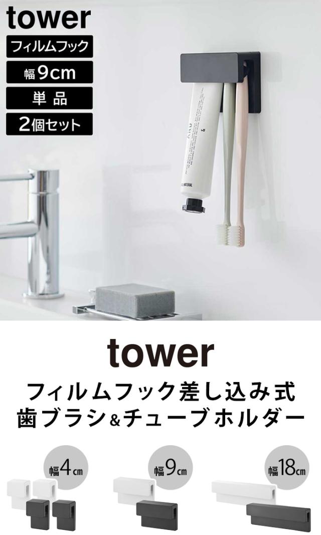 タワー 山崎実業 tower フィルムフック差し込み式歯ブラシ&チューブホルダー W9 1495 1496 YAMAZAKI フィルムフック 歯ブラシ収納 歯磨きスタンド 歯ブラシホルダー おしゃれ 歯ブラシ立て 浮かせる 壁掛け収納 洗面所 洗面台 サニタリールーム 省スペース