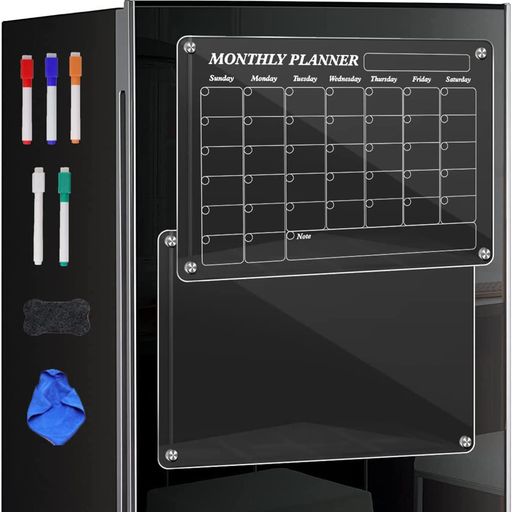TEZILON 【2セット】 ホワイトボード 月間板&透明板 アクリル板 透明 冷蔵庫 磁石 キッチンパネル マグネット対応 予定表 カレンダー プランニングボード スケジュールボード 在宅勤務 オフィス 子供落書き 掲示板 メモ
