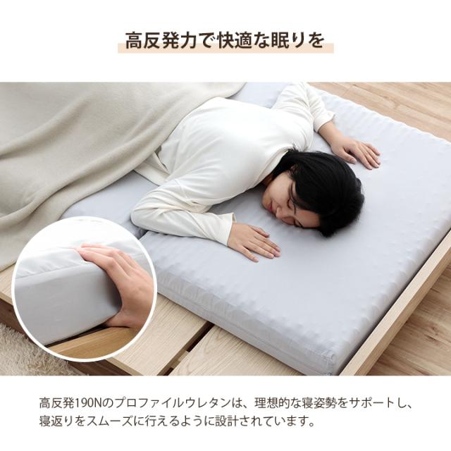 | 【ベッド】フレーム=プリント紙化粧繊維板 脚=天然木/【ベッド】フレーム=プリント紙化粧繊維板 脚=天然木 【マットレス】側生地=ポリエステル100%(ピーチスキン) 中材=高反発ウレタンフォーム 25D 190N 10cm(プロファイル) |