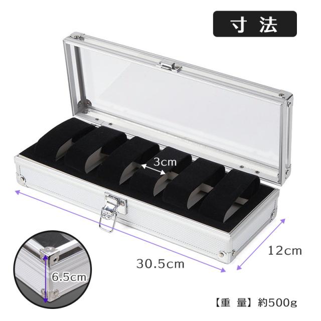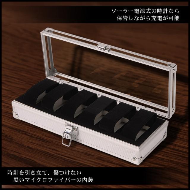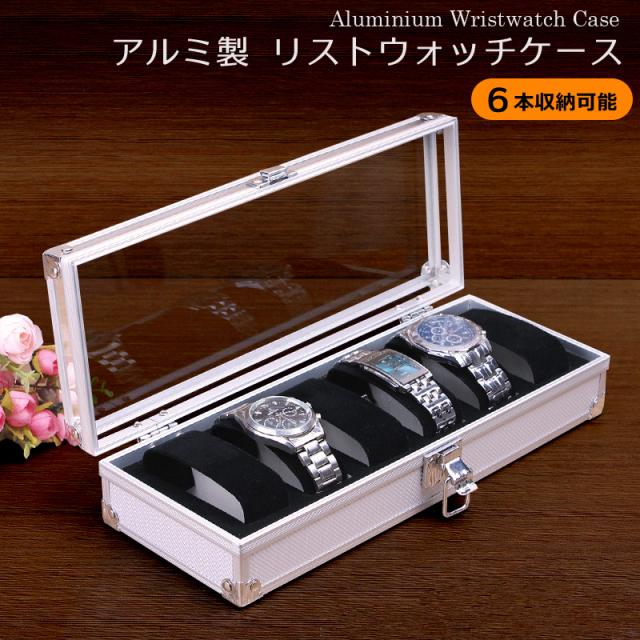 腕時計ケース 6本用 6本収納 大容量 縦型 高級 アルミ シルバー色 ハード 上から見える透明のアクリルカバー コレクションケース ディスプレイ 鑑賞 持ち運びケース メンズ レディース 保管 旅行 おしゃれ かわいい 還暦祝い g-shockも収納可能